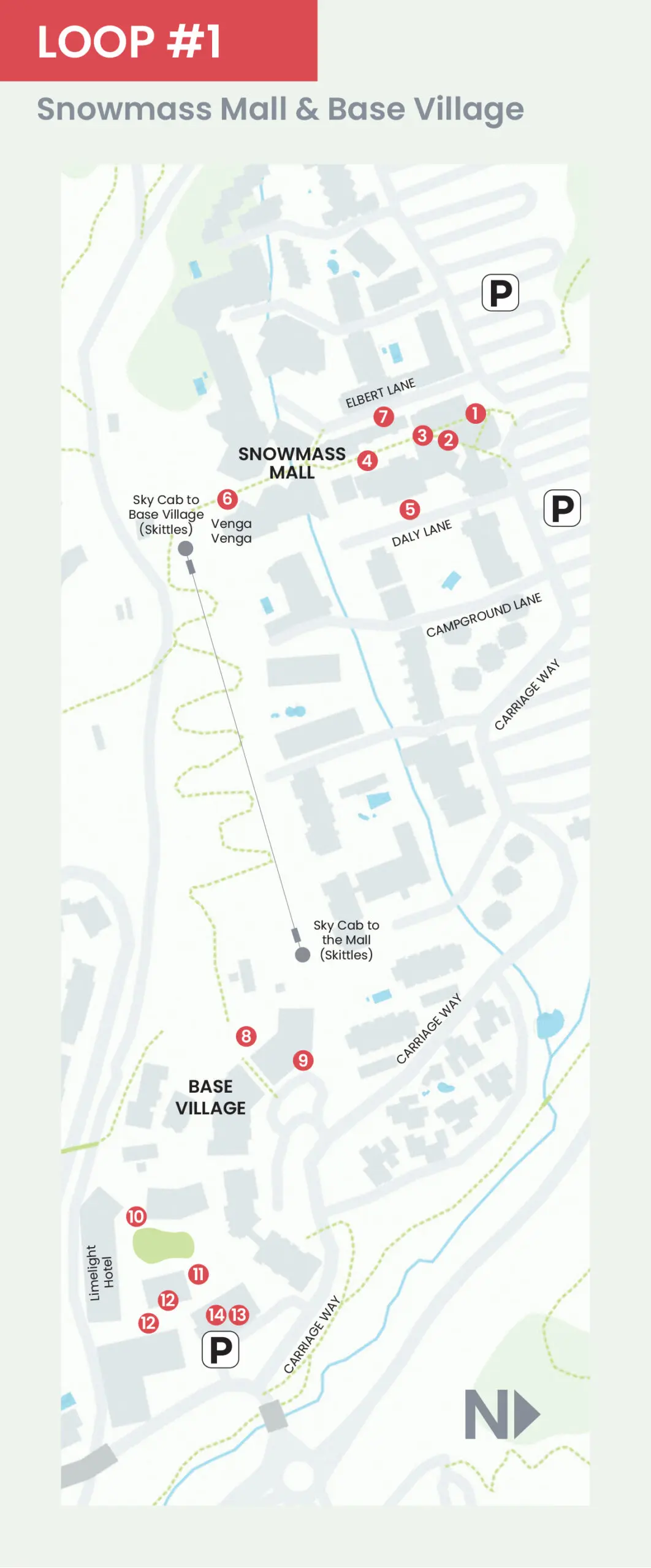 Explore public art, sculptures, murals, and more in Snowmass by following the curated Snowmass Art Walk loops outlined below. Need help navigating? Scroll to find walking directions and corresponding photo for each piece of art.