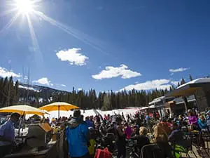 Reservations are recommended for a gourmet Colorado lunch of elk, lamb, or trout on the spectacularly situated deck of this on-mountain dining hot spot. And, there’s no need to RSVP for the Lynn Britt Cabin’s après. While this fan favorite may look different this year there’s no denying that this easily accessible apres scene sprinkled with red adirondack loungers may have you feeling good about tapping out from skiing a little bit early.
