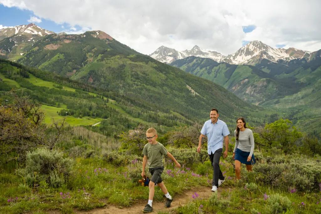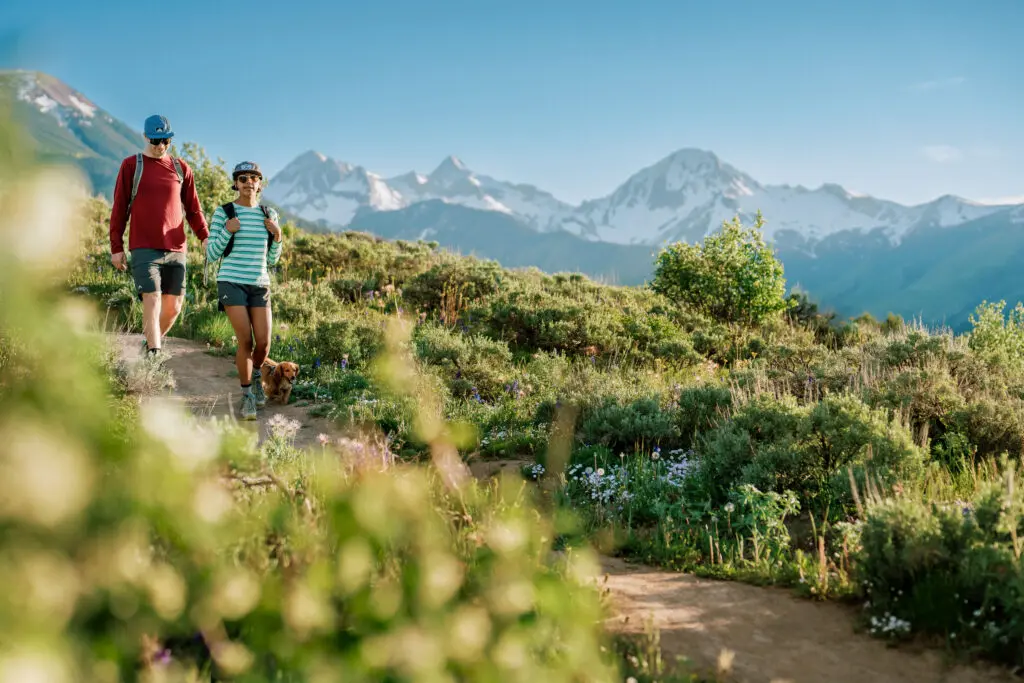 Let’s set the scene: you arrive in Snowmass, step off the plane, and immediately are grateful for the sweater or down puffy coat you packed in your bag in case the air conditioning got too cold. In the morning, you wake up and enjoy a cup of coffee on the balcony of your hotel, bundled up in a blanket as the sun creeps across Mt. Daly. By 10am the sun is hot, but luckily the trail you’re excited to hike—Tom Blake—is a steady uphill climb under a mixed conifer-aspen forest, with plenty of shade to be had!