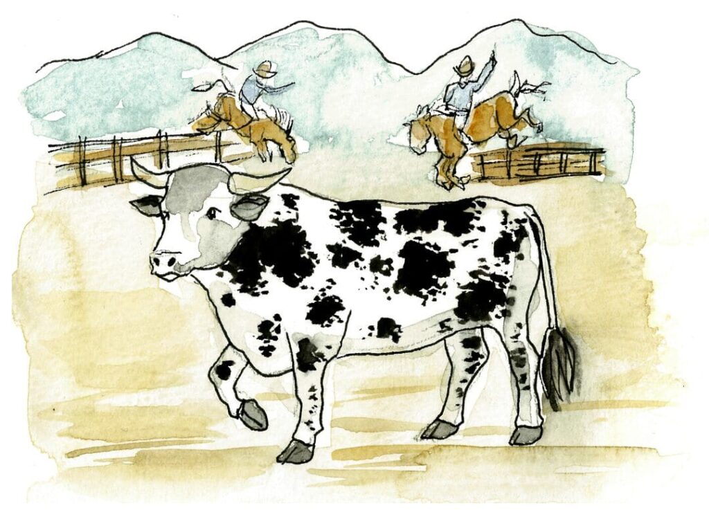 To toss cowboys off of his broad, spotted back.