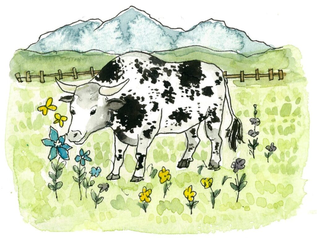 The bull with a dream of flowers for miles.