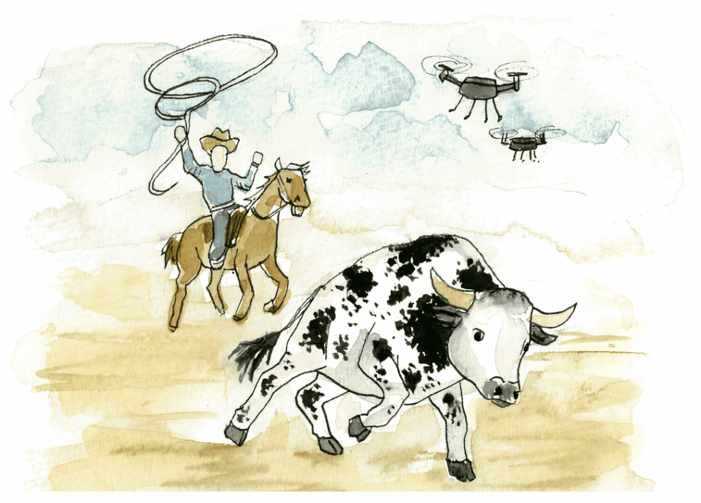 The cowboys rode out with lassos held high,