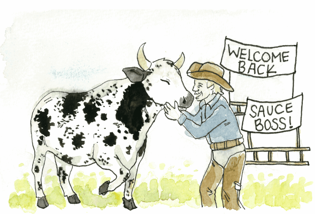 “Sauce Boss!” they holler. “We’re glad you’re back here!”